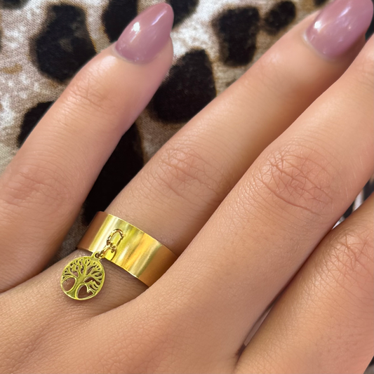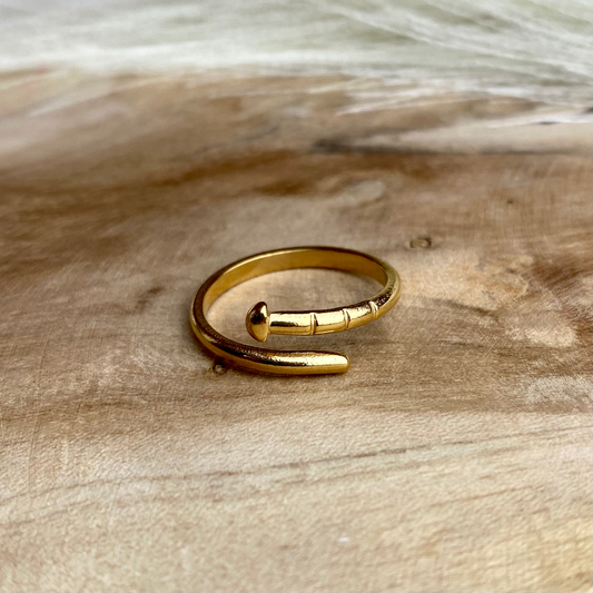Clou I Bague en acier inoxydable ajustable dorée.