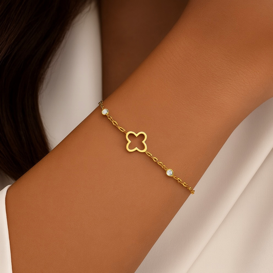 Cadentia | Bracelet trèfle en acier inoxydable et pierres naturelles